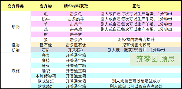 各类变身生物详解