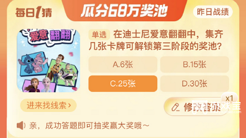 和平精英下载ios1、在迪士尼爱意翻翻中,集齐几张卡牌可解锁第三阶段的奖池?2、答:25张。3、这个游戏的卡一共有27张,玩家通过游戏可以收集,当玩家收集进度达到25的时候就可以领取到第三阶段的奖励了。