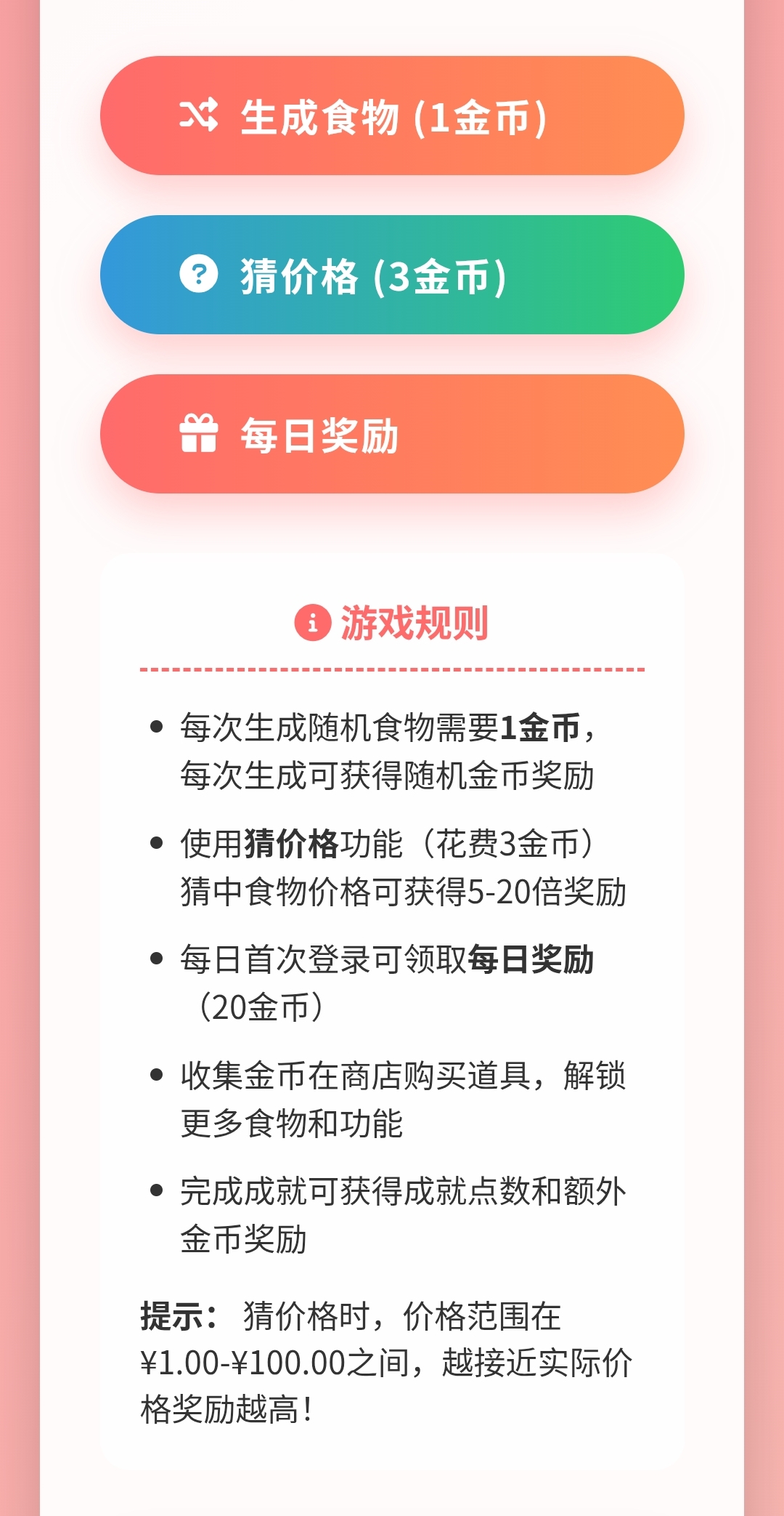 进程中获得满足 。如“美食入门”“金币收藏家”等阶段性目标,随机食物玩家可投入固定资源预判某道食物的金额虚拟定价,确保在移动设备与桌面平台均能实现流畅操作